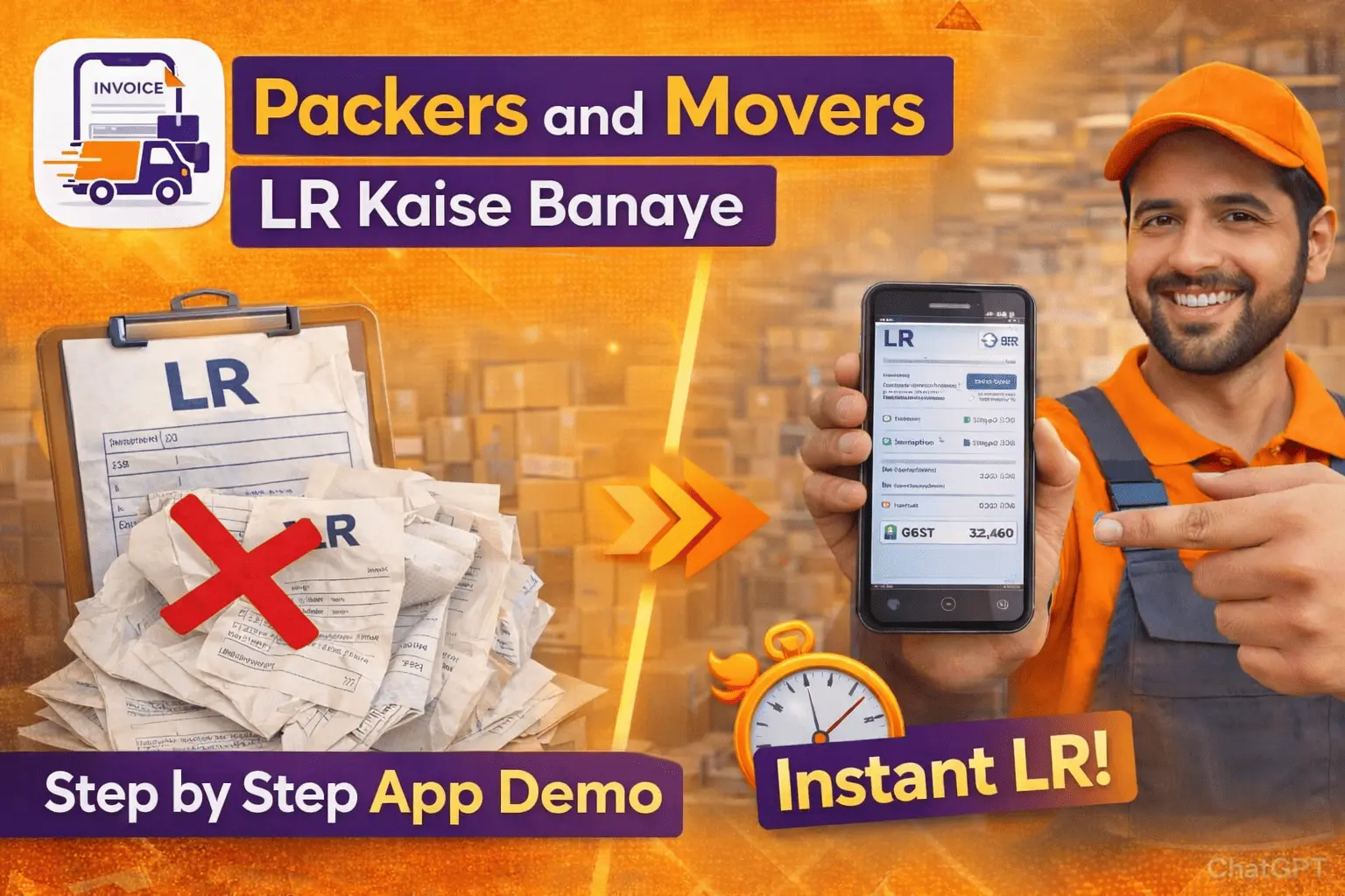 Generate and share professional Lorry Receipts (LR) instantly. Fast, secure, and 100% paperless!"